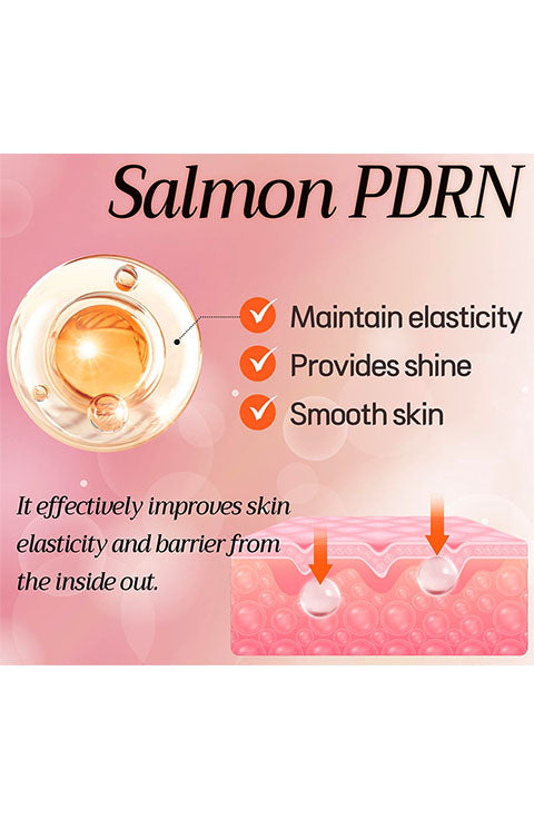 This Salmon PDRN ampoule effectively improves skin elasticity, reduces wrinkles, and nourishes skin.
