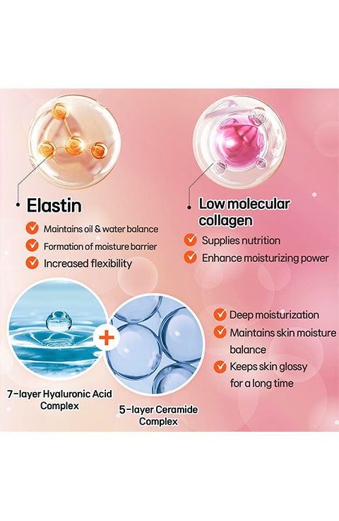 Contains 7 types of Hyaluronic Acid that provide deep moisturization and 5 types of Ceramide that strengthen the skin's base by preventing moisture evaporation.