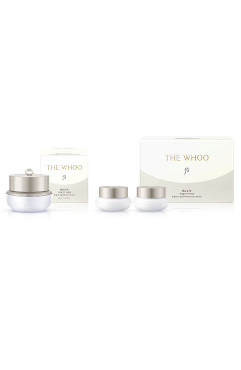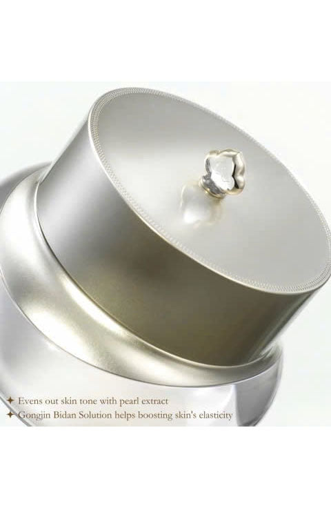 Dimethicone, Dimethicone/Vinyl Dimethicone Crosspolymer, Squalane, Caprylic/Capric Triglyceride, Paraffin, Water, Stearyl Glycyrrhetinate, Myristica Fragrans (Nutmeg) Extract, Silica, Iron Oxide Yellow, Butylene Glycol, Triethoxycaprylylsilane, Silkworm Extract, Ganoderma Lucidum (Mushroom) Extract, Polygonatum Officinale Rhizome/Root Extract, Asparagus Cochinchinensis Root Extract, Polygonum Multiflorum Root Extract, Dimocarpus Longan Fruit Extract, Dioscorea Japonica Root Extract, Litchi Chinensis Fruit Extract, Ziziphus Jujuba Fruit Extract, Cornus Officinalis Fruit Extract, Angelica Acutiloba Root Extract, Thymus Vulgaris (Thyme) Extract, Panax Ginseng Root Extract, Panax Ginseng Root Extract, Pearl Extract, Chaenomeles Sinensis Fruit Extract, Chrysanthemum Sinense Flower Extract, Lilium Candidum Flower Extract, Cinnamomum Cassia Bark Extract, Diospyros Kaki Leaf Extract, Artemisia Princeps Leaf Extract, Camellia Sinensis Leaf Extract, Chrysanthellum Indicum Extract, Citrus Nobilis (Mandarin Orange) Peel Extract, Cyperus Rotundus Root Extract, Eugenia Caryophyllus (Clove) Bud Extract, Foeniculum Vulgare (Fennel) Fruit Extract, Santalum Album (Sandalwood) Wood Extract, Zingiber Officinale (Ginger) Root Extract, Agastache Rugosa Extract, Poria Cocos Sclerotium Extract, Ginkgo Biloba Nut Extract, Morus Alba Bark Extract, Paeonia Lactiflora Root Extract, Atractylodes Japonica Rhizome Extract, Ampelopsis Japonica Root Extract, Tribulus Terrestris Fruit Extract, Talc, Laureth-4, (-)-alpha-bisabolol, Titanium Dioxide (CI 77891), C12-14 Alketh-12, Chrysanthemum Indicum Flower Extract, 1,2-Hexanediol, Fragrance, Linalool, Geraniol, Limonene, Benzyl Benzoate, Hexyl Cinnamal, Citronellol [Gongjinhyang Seol Radiant White Moisture Cream] Water, Propanediol, Diphenylsiloxy Phenyl Trimethicone, Caprylyl Methicone, Methyl Trimethicone, Sodium Chloride, Cedrol, Glycyrrhiza Uralensis (Licorice) Extract, Typha Angustifolia Spike Extract, Liriope Muscari Extract, Dimethicone/Phenyl Vinyl Dimethicone Crosspolymer, Boron Nitride, Sodium Citrate, PEG-10 Dimethicone, Citric Acid, Citronellol, Hexyl Cinnamal, Linalool