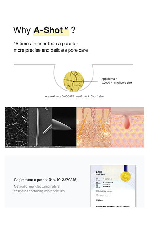 infused with 0.1% retinal, the advanced form of retinol, combined with A-Shot, designed to directly penetrate pores and enhance absorption, delivers retinal deep into the skin to target wrinkles and enlarged pores, promoting smoother and firmer skin.