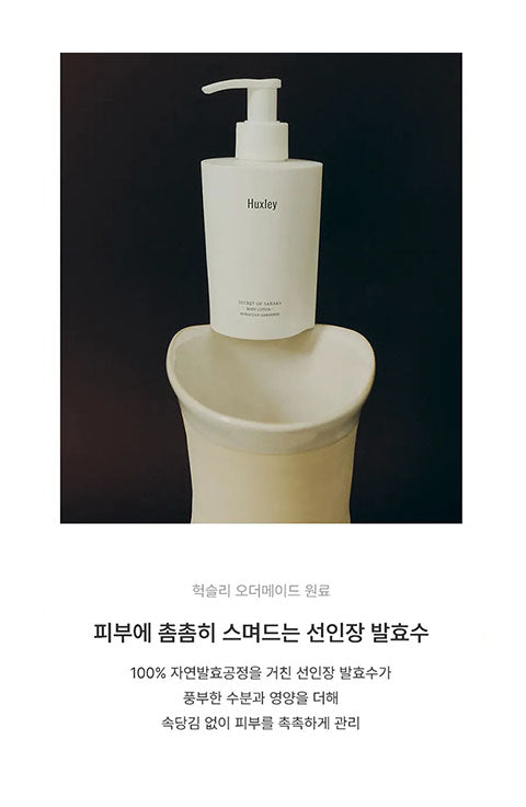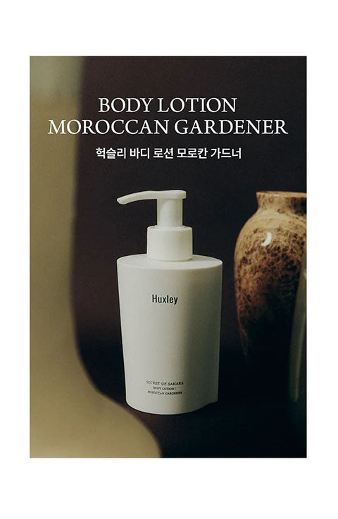 Huxley's signature scented vegan body lotion that richly moisturizes and locks in hydration, leaving skin soft and smooth with a delicate musky scent.