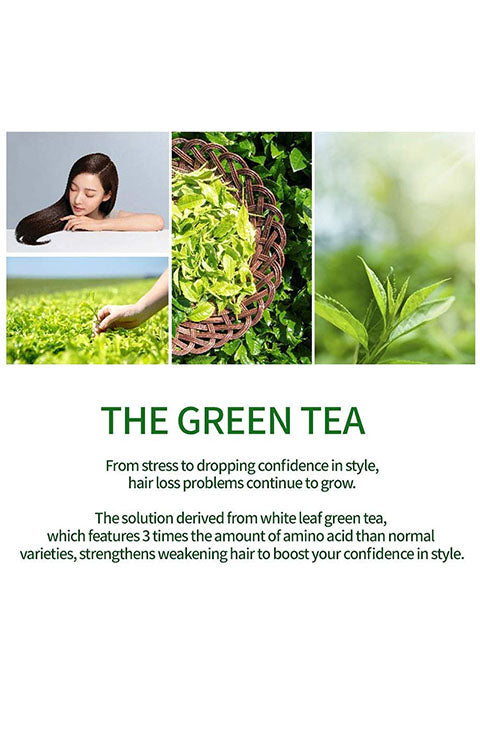 HELPS WITH HAIR GROWTH : The green tea from clean Jeju island fields’ contains amount of amino acids that are the building block of proteins and necessary for hair growth. Not only does it facilitate healthy hair growth, but they also help in stimulating new hair growth