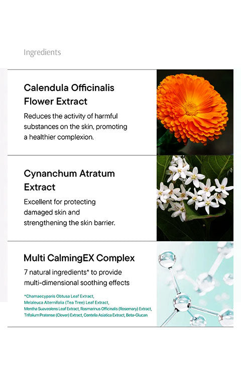 Contains Calendula Officinalis Flower Extract that helps create a healthier complexion, and Cynanchum Atratum Extract that helps strengthen skin barrier.