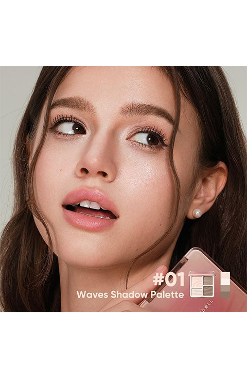 #01 Wave Shadow: Cool gray-brown + pink crystal shimmer + nude matte pink · Cool pink undertones & olive skin