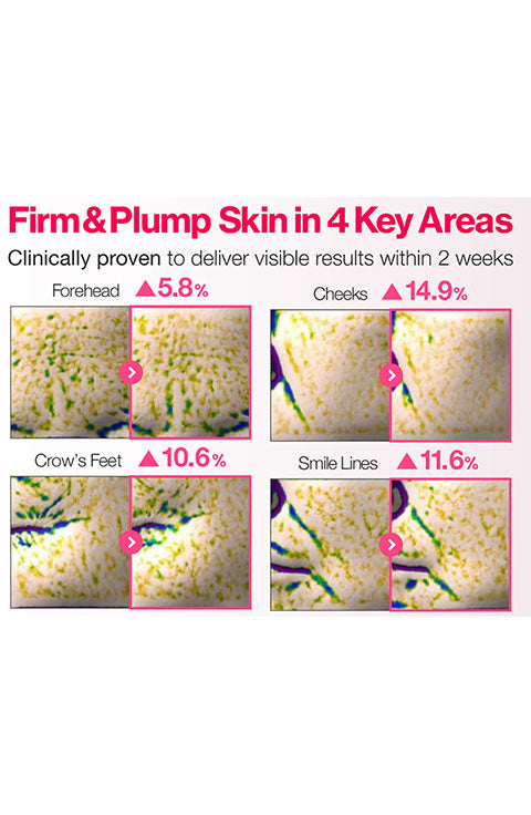 [CLINICALLY TESTED] Clinically proven to improve skin elasticity deep into 15 layers, and visibly plump key areas including the cheeks, forehead, nasolabial folds, and under-eyes. Clinical results show noticeable improvements in skin tone and hydration, with plumping effects lasting up to one week. Primary skin irritation test completed, free from artificial colors, and suitable for sensitive skin.