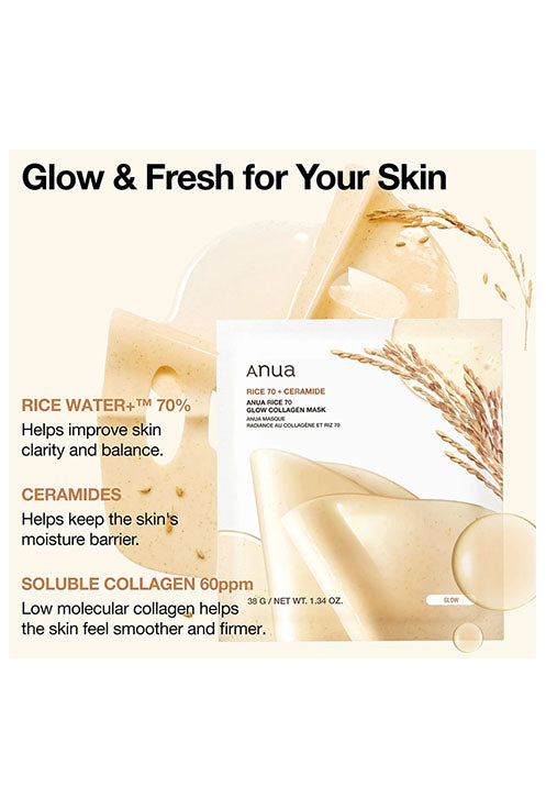 [Glow & Bouncy Firmness] Anua's Rice Water+ complex, ceramide, and collagen helps improve skin clarity and balance. Panthenol helps maintain the skin’s moisture barrier.