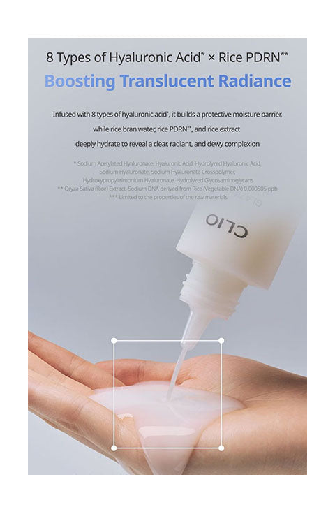 Formulated with eight types of Hyaluronic Acid, Ectoin, Niacinamide, and Rice PDRN, it helps brighten the complexion while soothing and deeply moisturizing the skin.