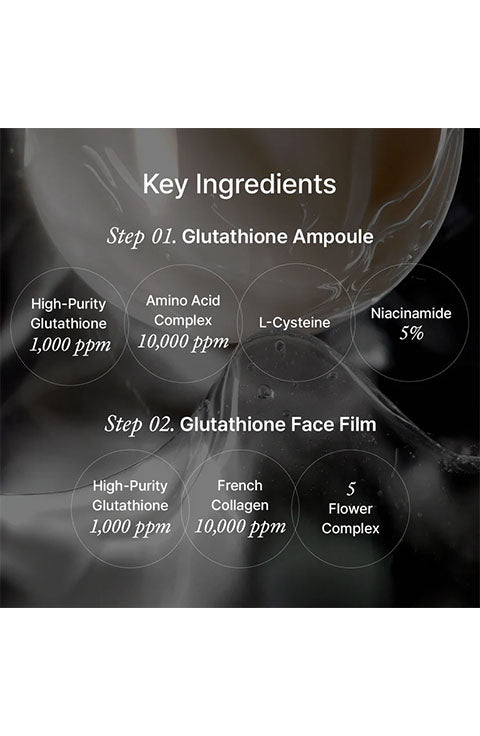 [Step 1 Synergy Ampoule Mask] Water, Glycerin, Butylene Glycol, Niacinamide, Propandiol, Methylpropanediol, Caprylic/Capric Triglyceride, 1,2-Hexanediol, Hydroxyethyl Acrylate/Sodium Acryloyldimethyl Taurate Copolymer, Alcohol Denat., PVP, Polysorbate 20, Ammonium Acryloyldimethyltaurate/VP Copolymer, Glutathione, Ethylhexylglycerin, Sorbitan Isostearate, Menthyl Lactate, Adenosine, Glycine, Disodium EDTA, Serine, Glutamic Acid, Melia Azadirachta Leaf Extract, Aspartic Acid, Leucine, Melia Azadirachta Flower Extract, Leucojum Aestivum Bulb Extract, Curcuma Longa (Turmeric) Root Extract, Alanine, Lysine, Arginine, Tyrosine, Phenylalanine, Valine, Threonine, Proline, Isoleucine, Histidine, Methionine, Cysteine, Ocimum Sanctum Leaf Extract, Corallina Officinalis Extract, Tocopherol, Fragrance, Ascorbic Acid [Step 2 Neck Film] Water, Glycerin, Dipropylene Glycol, Methylpropanediol, Niacinamide, Chondrus Crispus, Ceratonia Siliqua (Carob) Gum, 1,2-Hexanediol, Pentylene Glycol, Polyglyceryl-6 Caprylate, Polyglyceryl-4 Caprate, Xanthan Gum, Cellulose Gum, Potassium Chloride, Sodium Polyacrylate, Sucrose, Collagen Extract, Glutathione, Allantoin, Ethylhexylglycerin, Adenosine, Disodium EDTA, Butylene Glycol, Hydrolyzed Sponge, Prunus Serrulata Flower Extract, Arnica Montana Flower Extract, Chrysanthemum Indicum Flower Extract, Prunus Persica (Peach) Flower Extract, Rosa Rugosa Flower Extract, Fragrance, Tocopherol