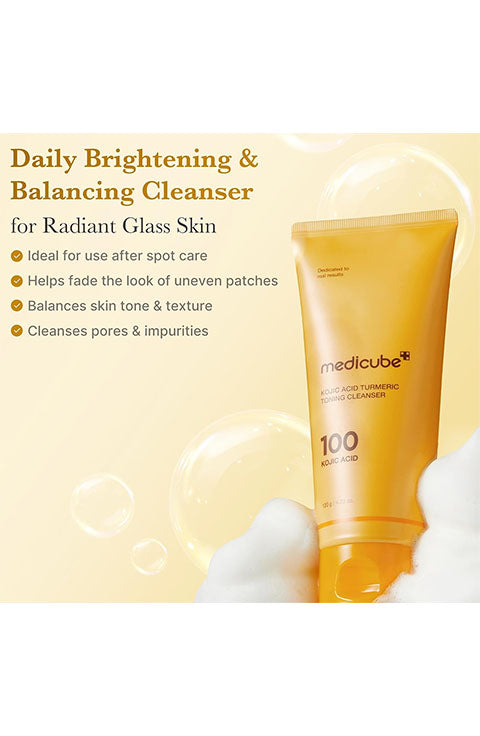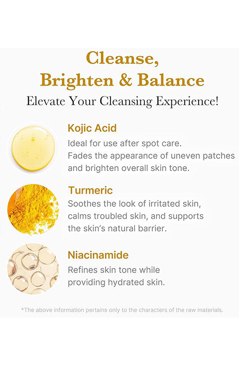 Antioxidant-rich Kojic Acid and Turmeric help wash away dullness, balance skin tone, and support the skin’s natural moisture barrier—leaving skin visibly brighter after cleansing.