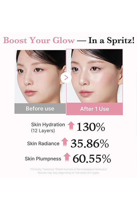 [On-The-Go Glow] Lightweight, travel-friendly mist designed for morning prep, mid-day refresh, or post-workout glow. Fits perfectly in your daily routine.