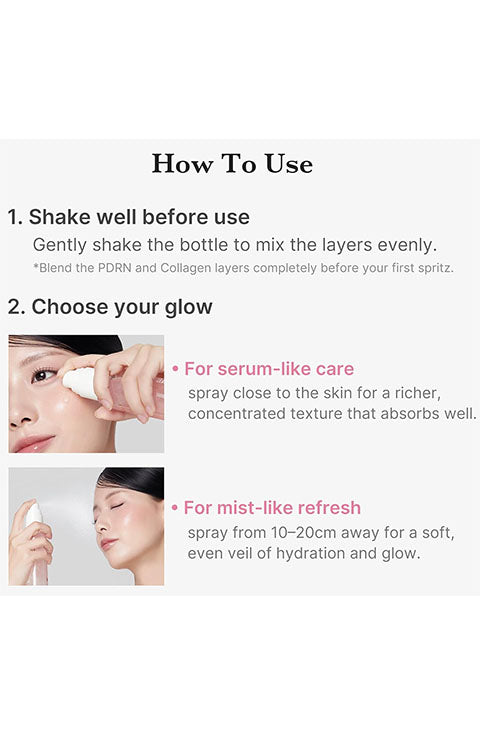 [Quick Hydration, Lasting Radiance] Enriched with 99% purity Salmon PDRN and Collagen, this dual-texture formula delivers quick hydration and a lasting dewy glow — leaving skin plump, smooth, and radiant anytime, anywhere.